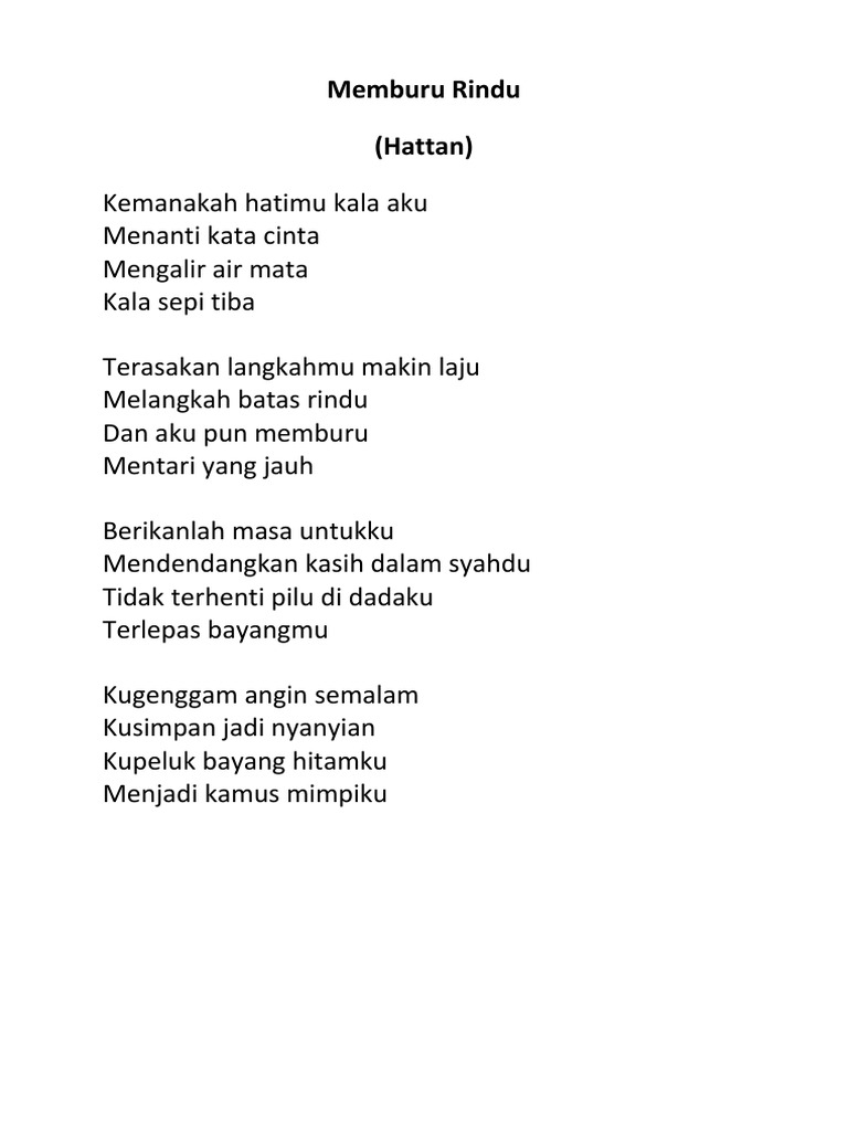 Dato Hattan Memburu Rindu Lyrics Musixmatch